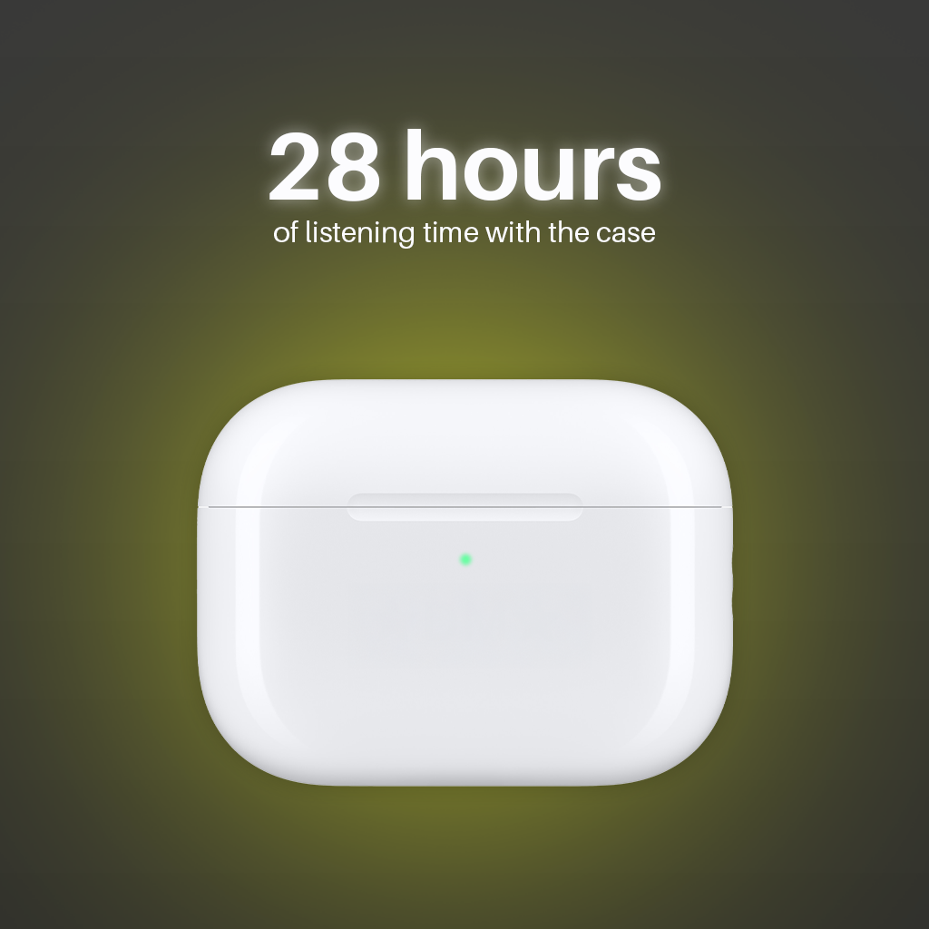 Enjoy up to 28 hours of total playback with the charging case. The earbuds themselves last for hours on a single charge, keeping you powered all day.